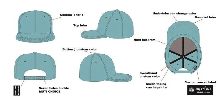 Özel baskı tasarımı Yüksek Kaliteli - Özel Yapım, Sizi serin ve kuru tutmak için dahili pamuklu ter bandı, Taçta 6 İşlemeli nefes alabilen Kuşgözü Vizörde 6 Sıra Dikiş, Mükemmel uyum için ayarlanabilir snapback.